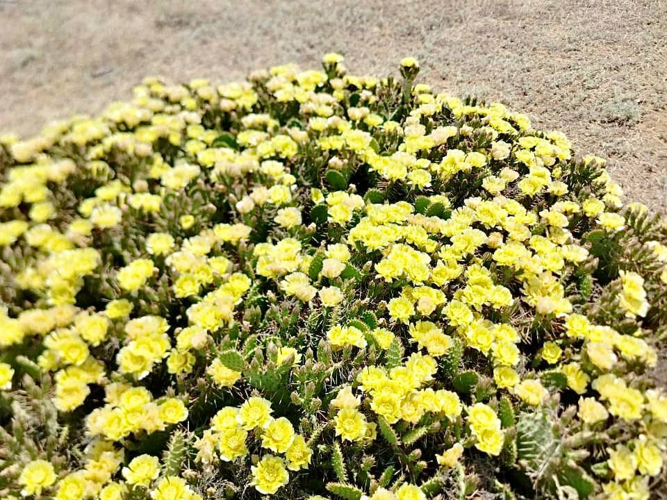На прошлой неделе на территории памятника природы регионального значения «Урочище Кордон» в Харабалинском районе началось цветение кактуса опунции скрученноиглой (Opuntia tortispina). Необычное для Астраханской области природное явление можно ежегодно наблюдать в начале июня. Цветение продолжается в течение нескольких дней.